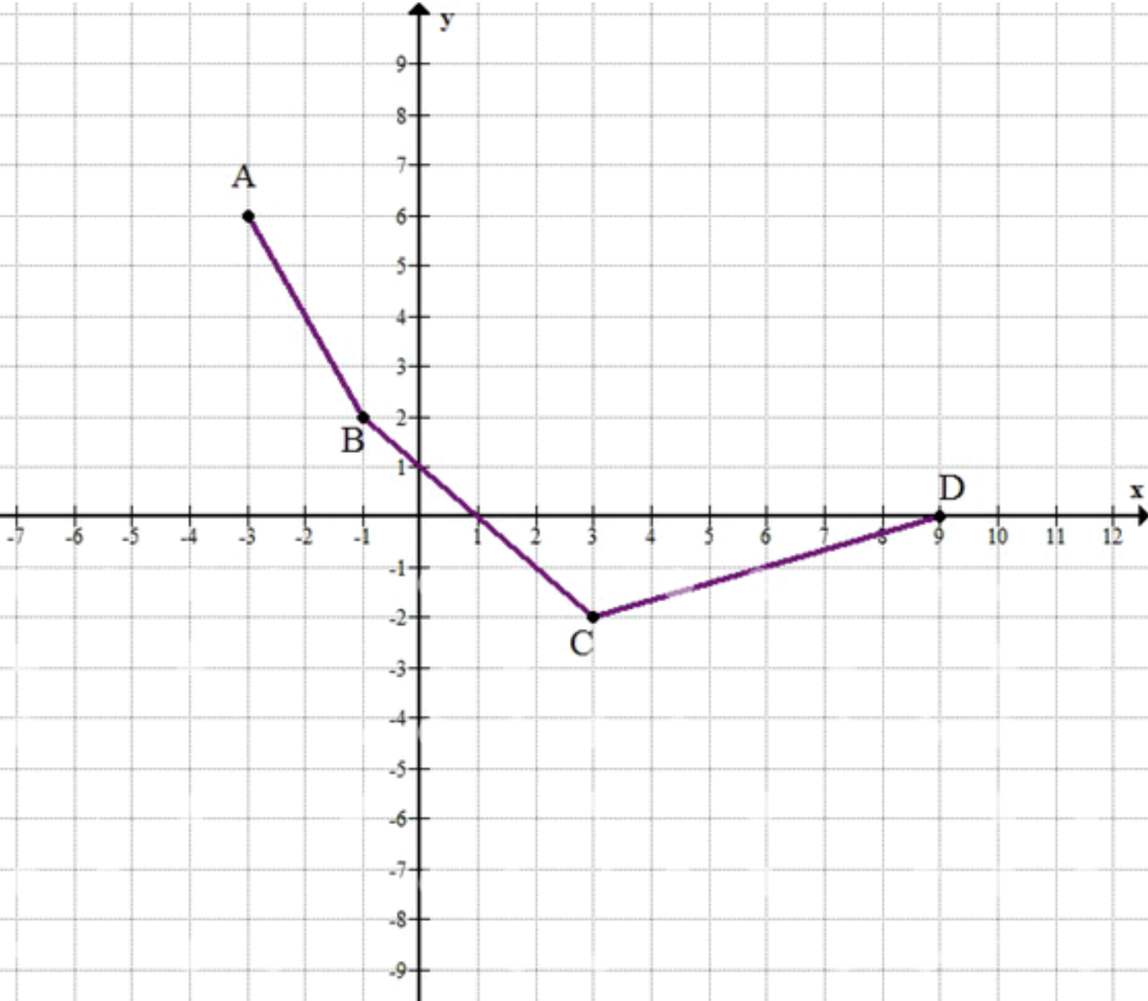 Графиком некоторой функции является ломаная AВСD с вершинами в точках А (-3; 6), В (-1; 2), С (3; -2), D (9; 0).