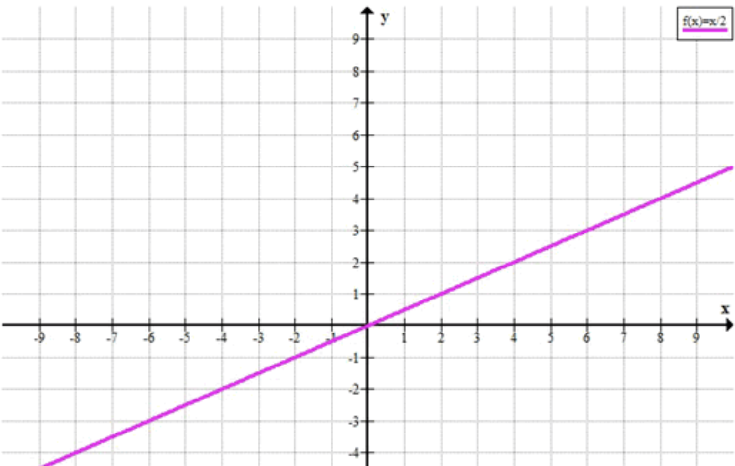 Визуально график будет выглядеть как прямая линия, начинающаяся в точке \( (0,0) \) и с углом наклона \( \frac{1}{2} \), с тем, что каждый следующий шаг на оси \( x \) будет увеличивать значение \( y \) на 0,5.