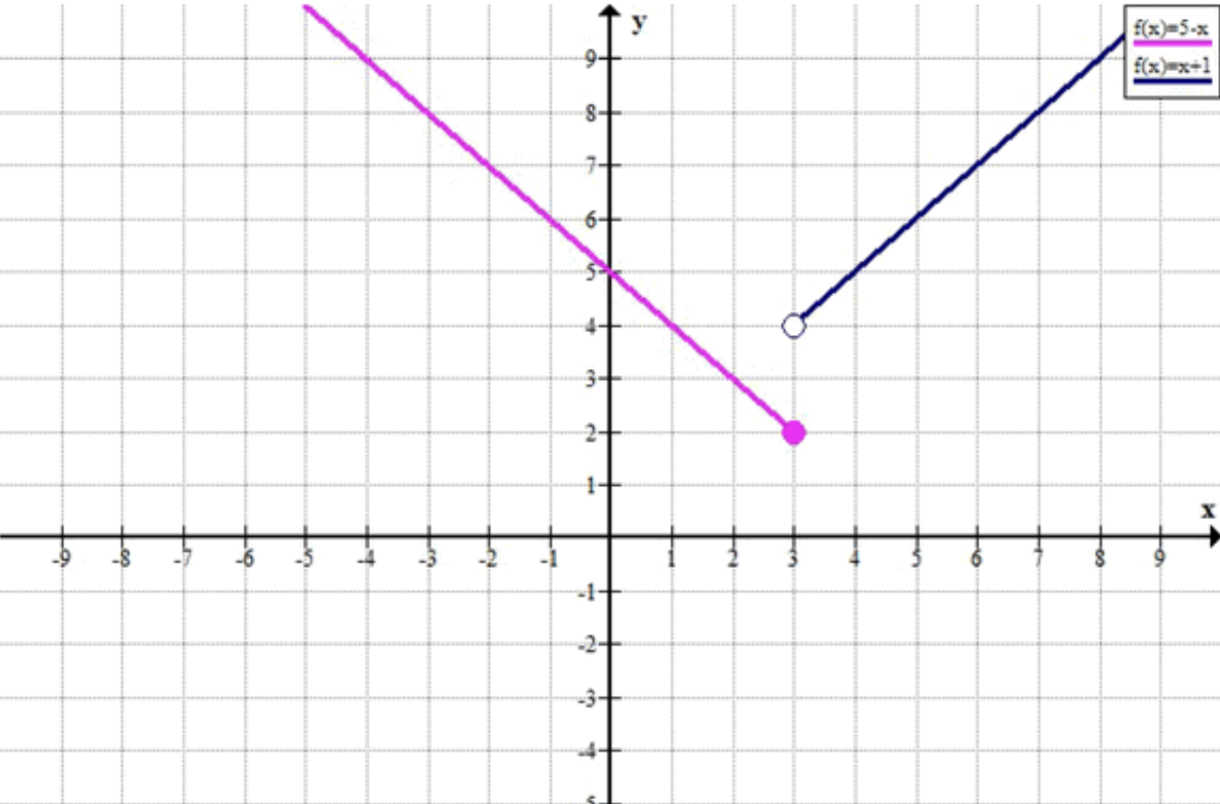 2) \(y = \begin{cases} 5 — x, & \text{если } x \le 3 \\ x + 1, & \text{если } x > 3 \end{cases}\)