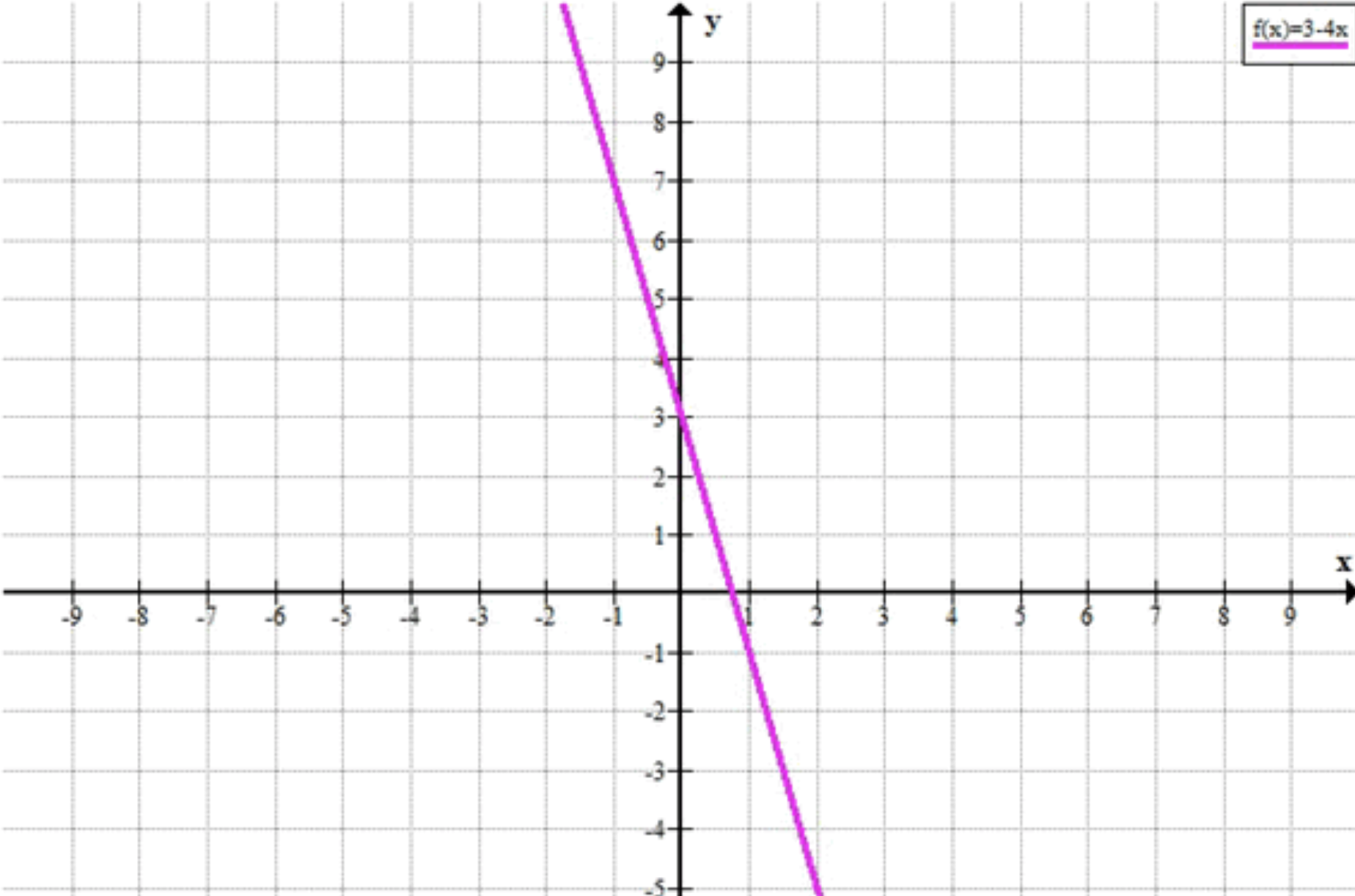 При \( x = 1 \), \( y = 3 — 4 \cdot 1 = -1 \);