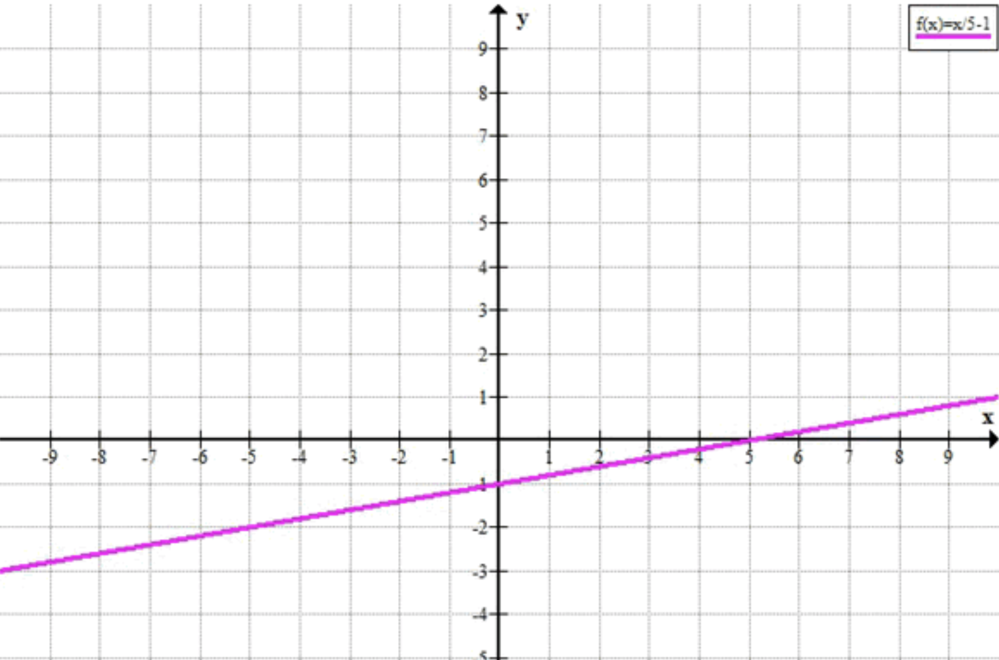 При \( x = 5 \), \( y = \frac{1}{5} \cdot 5 — 1 = 0 \);