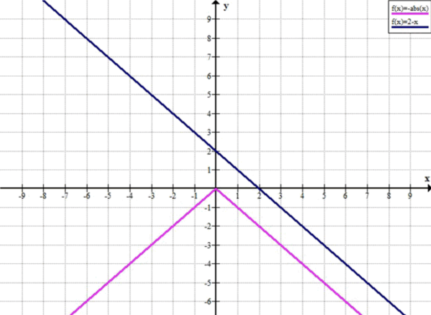 \( \begin{cases} y = -|x| \\ y = 2 — x \end{cases}; \)