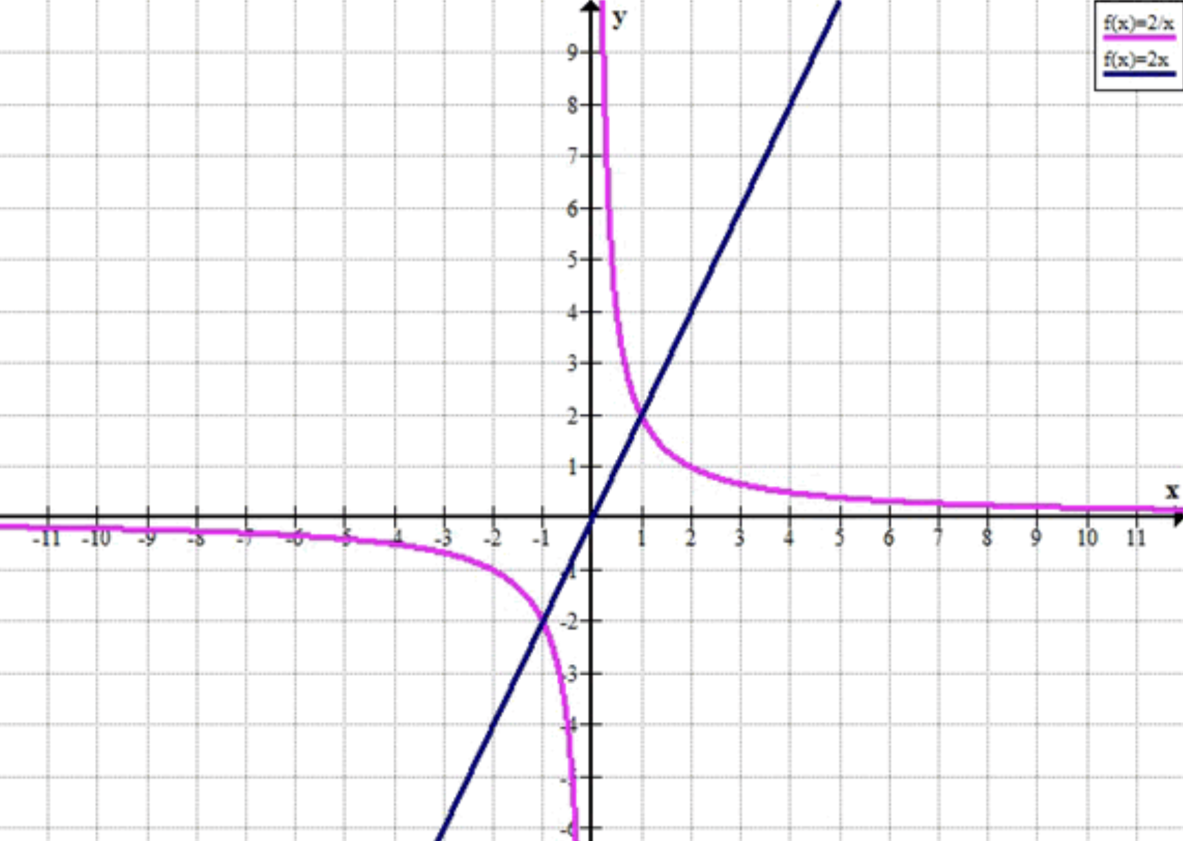 \( y = \frac{2}{x} \) и \( y = 2x \).
