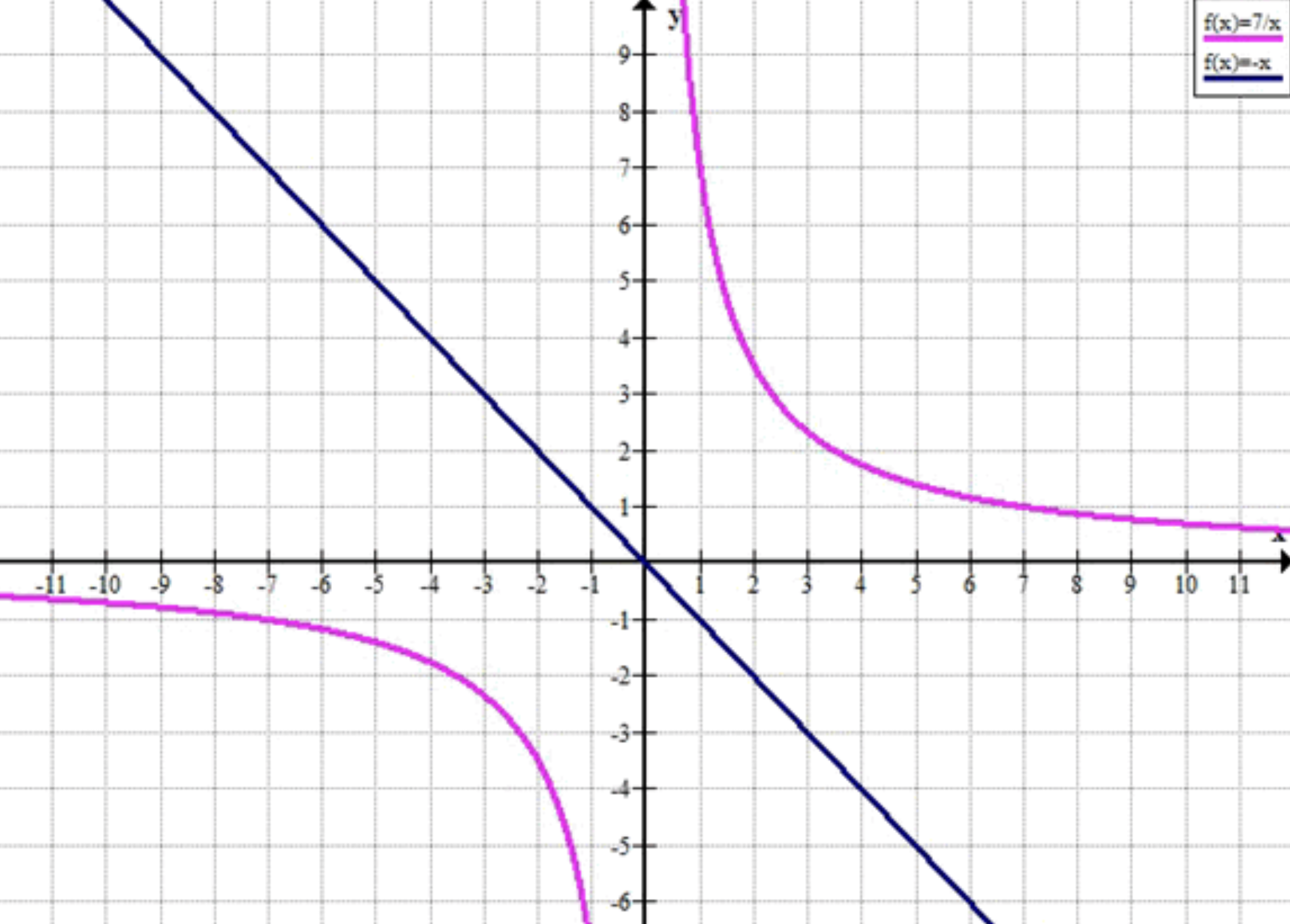 \( y = \frac{7}{x} \) и \( y = -x \).