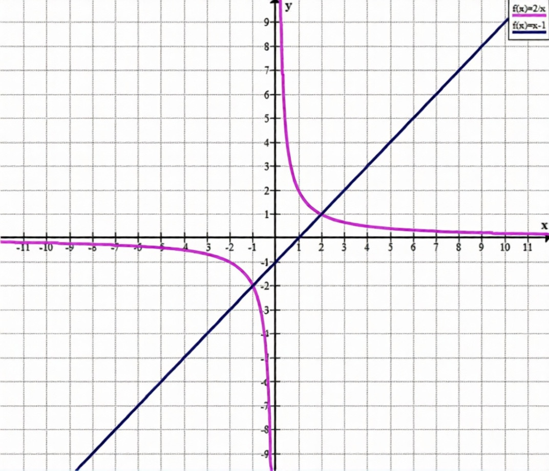 Ответ: точки пересечения графиков находятся в точках \( (-1; -2) \) и \( (2; 1) \).