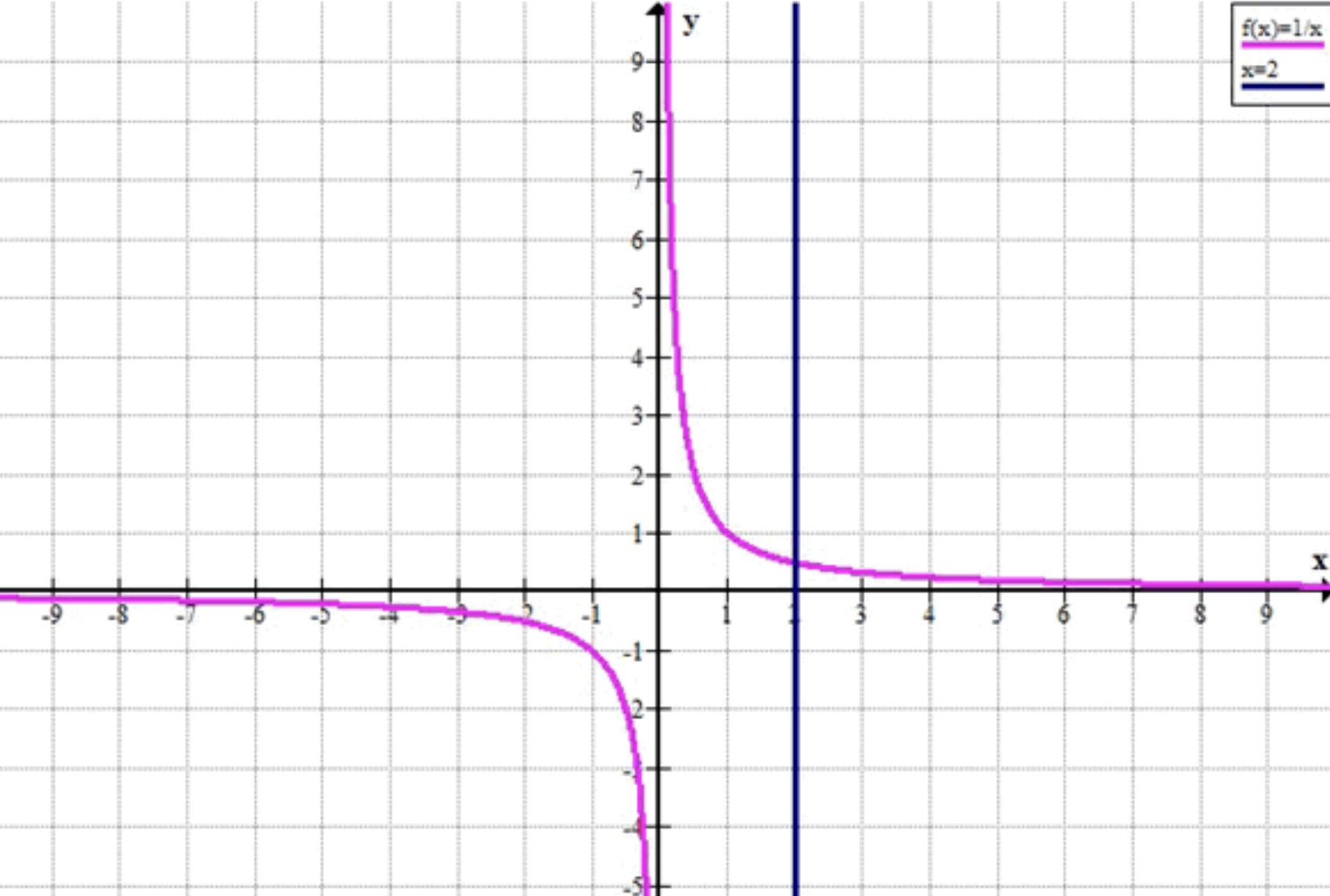 Итак, график будет содержать гиперболу и вертикальную прямую, пересекающую ось \( x \) в точке \( x = 2 \).