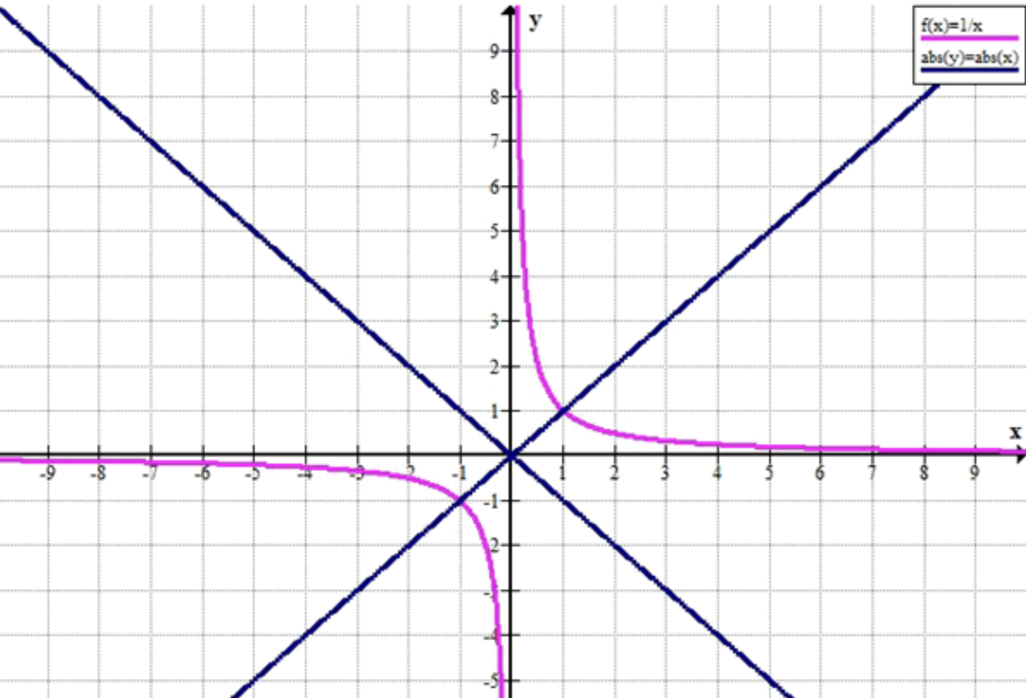 Итак, график будет состоять из гиперболы и двух прямых \( y = x \) и \( y = -x \), пересекающих гиперболу.
