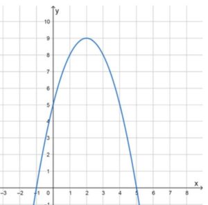 Дана квадратичная функция \(f(x) = 5 + 4x — x^2\), которую можно переписать как \(f(x) = -x^2 + 4x + 5\). Чтобы найти координаты вершины параболы, используем формулы для вершины квадратичной функции: \(x_0 = -\frac{b}{2a}\), где \(a = -1\), \(b = 4\). Подставляя, получаем \(x_0 = -\frac{4}{2 \cdot (-1)} = 2\). Значение функции в вершине вычислим подставляя \(x_0\): \(y_0 = f(2) = 5 + 4 \cdot 2 — 2^2 = 5 + 8 — 4 = 9\). Таким образом, вершина параболы находится в точке с координатами \((2; 9)\). Для понимания поведения функции вычислим значения в нескольких точках справа от вершины: \(f(3) = 8\), \(f(4) = 5\), \(f(5) = 0\), что показывает убывание функции на промежутке после вершины.