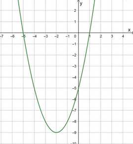 3)Найдём вершину параболы: \(x_{0}=-\frac{4}{2\cdot1}=-2\), \(y_{0}=(-2)^{2}+4\cdot(-2)-5=-9\). Для уточнения формы кривой составим таблицу значений: