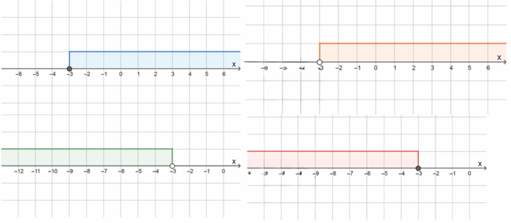 4) \((-\infty; -3]\) — это все числа меньше или равные \(-3\). На координатной прямой отмечаем точку \(-3\) закрашенной и ведём линию влево.