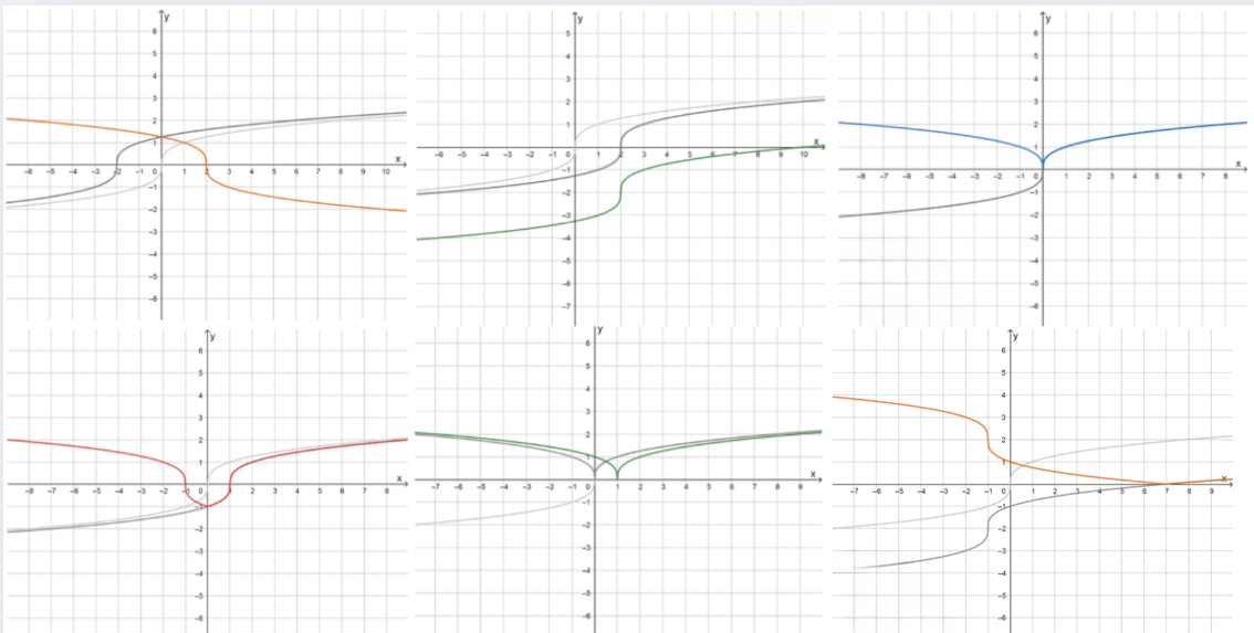 1) Построим график \( y = \sqrt[3]{x} \); сдвинем его на 2 единицы влево: \( y = \sqrt[3]{x+2} \); отразим относительно оси ординат: \( y = \sqrt[3]{2 — x} \).