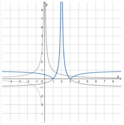 2) \(y = \frac{1}{|x-2| — 1}\);