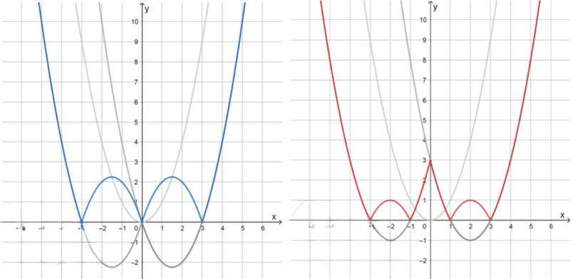 Постройте график функции: 1) \(y = |x^2 — 3|x||\); 2) \(y = x^2 — 4|x| + 3|\).