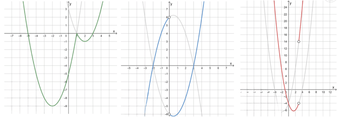 Если \( x > 3 \), то \( y = x^2 + 3x — 4 \)