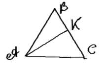 Длина биссектрисы \( dK \) найдётся по теореме косинусов: \( dK^2 = 30^2 + 18^2 — 2 \cdot 30 \cdot 18 \cdot \frac{7}{9} = 384 \), значит \( dK = 8 \sqrt{6} \) см.
