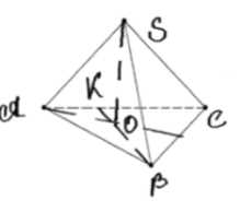 6. Для нахождения длины ребра \( SD \) используем теорему Пифагора в треугольнике \( SBD \), где катеты \( SO \) и \( BK \):