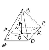 Длина \(SK\) вычисляется по теореме Пифагора: \(SK^2 = SO^2 + OK^2 = 4 + 4 = 8\), значит \(SK = 2\sqrt{2}\) см.