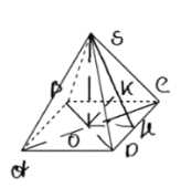 2. Для нахождения плоского угла при вершине пирамиды нужно рассмотреть площадь боковой поверхности. Боковая поверхность состоит из четырёх равных треугольников \( \triangle SOC \), где \( O \) — центр основания. Площадь одного такого треугольника обозначим \( S_{\triangle SOC} \). Тогда площадь всей боковой поверхности равна \( S_{\text{бок}} = 4 \cdot S_{\triangle SOC} \).