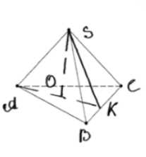 4. Для нахождения длины наклонной высоты боковой грани \(SK\) используем теорему Пифагора в треугольнике \(SOK\): \(SK = \sqrt{SO^2 + OK^2} = \sqrt{135 + 9} = 12\) см.