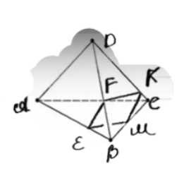 4. Обозначим точки пересечения плоскости с рёбрами \(AD\), \(BD\), \(BC\) и \(AC\) как \(E\), \(F\), \(K\) и \(M\) соответственно.