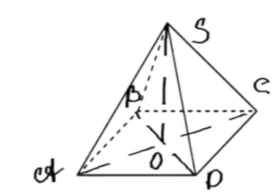 4. Высота пирамиды \(SO\) перпендикулярна основанию, поэтому \(SO\) — катет прямоугольного треугольника \(SBO\), где гипотенуза — боковое ребро \(SB\).