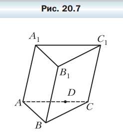 На ребре \(AC\) призмы \(ABC A_1 B_1 C_1\) отметили точку \(D\) (рис. 20.7). Постройте сечение призмы плоскостью \(BDB_1\).
