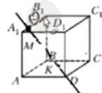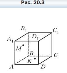 Точка \(M\) принадлежит грани \(AA_1 B_1 B\) куба \(ABCDA_1 B_1 C_1 D_1\), точка \(K\) — грани \(AA_1 D_1 D\) (рис. 20.3). Постройте точку пересечения прямой \(MK\) с плоскостью \(A_1 B_1 C_1\).