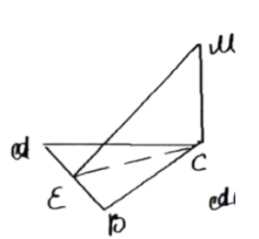 5. Рассмотрим треугольник \(DCE\), где \(DC\) перпендикулярна плоскости \(ABC\), а \(CE\) лежит в плоскости \(ABC\). Тогда угол между прямой \(DE\) и плоскостью \(ABC\) равен углу между \(DE\) и её проекцией \(CE\).