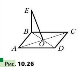Через вершину B ромба ABCD проведена прямая BE, перпендикулярная плоскости ромба (рис. 10.26). Докажите, что прямая AC перпендикулярна плоскости BEO.
