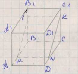 На ребре AB прямоугольного параллелепипеда ABCDA₁B₁C₁D₁ отметили точку M. Постройте сечение параллелепипеда плоскостью, проходящей через точку M и перпендикулярной прямой AB.