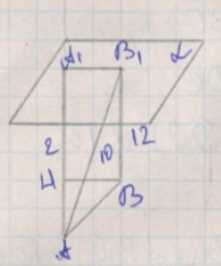 Отрезок AB не пересекает плоскость α. Через точки A и B проведены прямые, перпендикулярные плоскости α и пересекающие её в точках A₁ и B₁ соответственно. Найдите отрезок AB, если AA₁ = 2 см, BB₁ = 12 см, AB₁ = 10 см.