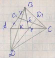 1. Пусть \(E\) — точка пересечения медиан треугольника \(ABC\), а \(F\) — точка пересечения медиан треугольника \(DBC\). Известно, что медианы треугольника пересекаются в его центре масс, который делит каждую медиану в отношении \(2:1\), считая от вершины.