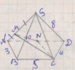 4. Точка \(N\) — середина \(SD\): координаты \(N\) равны \((\frac{10+10}{2}, \frac{0+0}{2}, \frac{8+0}{2}) = (10,0,4)\).