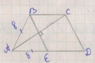 1. Пусть трапеция \(ABCD\) равнобокая, где \(AB = CD\). По условию трапеции биссектриса \(BE\) угла \(ABC\) перпендикулярна диагонали \(AC\), а четырёхугольник \(BCDE\) — параллелограмм.