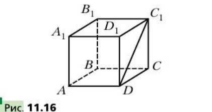 На рисунке 11.16 изображён куб ABCDA₁B₁C₁D₁. Укажите проекцию отрезка C₁D₁ на плоскость: