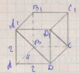 Введём координаты: \(D(0,2,0)\), \(A_1(0,0,2)\), \(C(4,2,0)\), \(D_1(0,2,2)\).