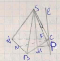 Точки \(M\) и \(N\) — середины рёбер \(BC\) и \(AB\). Прямые \(SM\) и \(CN\) в пространстве не пересекаются и не параллельны.