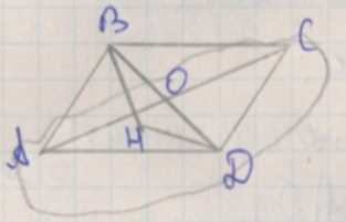 В данной задаче рассматривается ромб \(ABCD\), где диагональ \(AC\) лежит в плоскости \(\alpha\), а точка \(B\) удалена от этой плоскости на расстояние \(3\sqrt{7}\) см. Необходимо найти длину проекции диагонали \(BD\) на плоскость \(\alpha\). Проекция любого отрезка на плоскость — это минимальное расстояние между его концами, если один из концов перемещается перпендикулярно к плоскости до её пересечения. В нашем случае точка \(D\) уже лежит в плоскости \(\alpha\), а точка \(B\) удалена от неё, поэтому проекция \(BD\) — это отрезок \(HD\), где \(H\) — проекция точки \(B\) на плоскость \(\alpha\).