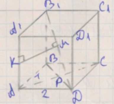 Находим точку \(M\) на диагонали \(B_1D\) так, чтобы отрезок \(KM\) был общим перпендикуляром к \(AA_1\) и \(B_1D\).