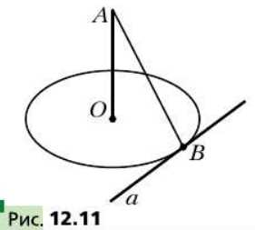Прямая AO перпендикулярна плоскости окружности с центром O (рис. 12.11). Прямая a принадлежит плоскости окружности и касается данной окружности в точке B. Докажите, что AB ⟂ a.