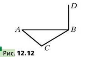 Отрезок BD — перпендикуляр плоскости равнобедренного треугольника ABC с основанием AC (рис. 12.12). Постройте перпендикуляр, опущенный из точки D на прямую AC.