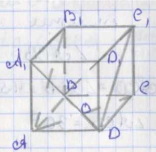 5) Прямая \(AC\) — это диагональ основания куба, соединяющая противоположные вершины \(A\) и \(C\). Плоскость \(ADD_1\) проходит через вершины \(A\), \(D\) основания и вершину \(D_1\) верхнего основания. Прямая пересекает эту плоскость в точке \(A\). В плоскости \(ADD_1\) через точку \(A\) можно провести прямую \(DO\), где \(O\) — центр грани основания. Таким образом, угол между прямой \(AC\) и плоскостью \(ADD_1\) равен углу между прямыми \(CA\) и \(DO\), то есть \(\angle (CA, DO)\).