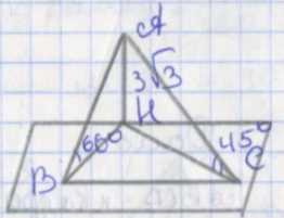 Длина наклонной \(AC = \frac{3\sqrt{3}}{\sin 45^\circ} = \frac{3\sqrt{3}}{\frac{\sqrt{2}}{2}} = 3\sqrt{6}\) см.