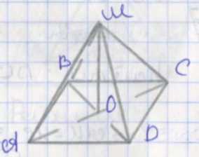 Точка \(M\) находится над центром квадрата, расстояние от \(M\) до любой вершины квадрата \(12\) см, угол между \(MA\) и плоскостью квадрата \(60^\circ\).