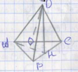 Для нахождения расстояния от точки \(D\) до стороны треугольника (\(DH\)), где \(H\) — проекция \(D\) на сторону, снова используем теорему Пифагора: \(DH^{2} = DO^{2} + OK^{2}\). Подставляя значения, получаем \(DH^{2} = (2\sqrt{3})^{2} + (\sqrt{3})^{2} = 4 \cdot 3 + 1 \cdot 3 = 12 + 3 = 15\), значит \(DH = \sqrt{15}\). Расстояние от точки \(D\) до центра треугольника по условию \(DO = 2\sqrt{3}\).