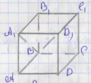 Из условия \(AB_1 = 2h\) следует, что длина вектора \(\vec{AB_1}\) равна \(2h\), то есть \(\sqrt{b^{2} + h^{2}} = 2h\). Возводя обе части в квадрат, получаем \(b^{2} + h^{2} = 4h^{2}\), откуда \(b^{2} = 3h^{2}\). Подставляем это значение в формулы для скалярного произведения и длин: скалярное произведение становится \(-3h^{2} + h^{2} = -2h^{2}\), длина \(|\vec{AB_1}| = 2h\), а длина \(|\vec{BD_1}| = \sqrt{3h^{2} + 5h^{2}} = \sqrt{8h^{2}} = 2\sqrt{2} h\).