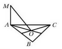 Точка \(M\) расположена над плоскостью треугольника так, что \(MA\) перпендикулярна плоскости \(ABC\) и \(MA = 2\) см. Прямая \(MO\) соединяет точку \(M\) и центр треугольника \(O\). Для нахождения угла между прямой \(MO\) и плоскостью \(ABC\) рассмотрим треугольник \(MAO\), где \(MA\) — высота, а \(AO\) — основание. Угол между прямой \(MO\) и плоскостью \(ABC\) равен углу между \(MO\) и проекцией \(MO\) на плоскость, то есть углу при вершине \(A\) в треугольнике \(MAO\).