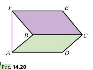 Прямоугольники \(ABCD\) и \(BCEF\) лежат в разных плоскостях (рис. 14.20), причём прямая \(AF\) перпендикулярна плоскости \(ABC\). Найдите двугранный угол, грани которого содержат данные прямоугольники, если \(AF = 15\) см, \(CD = 5\) см.