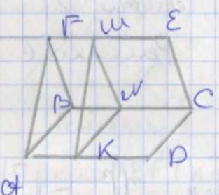 Так как \(AF\) перпендикулярна плоскости \(ABC\), угол между плоскостями \(ABCD\) и \(BCEF\) равен углу между отрезками \(CD\) и \(KF\).