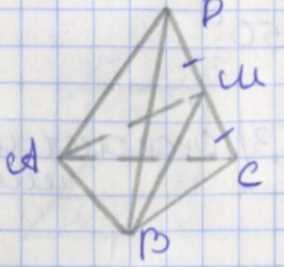 Тетраэдр \(DABC\) равносторонний, значит все его рёбра равны по длине. Это означает, что треугольники \(ACD\) и \(BCD\), которые образованы сторонами тетраэдра, являются равносторонними треугольниками. В равностороннем треугольнике все стороны и все углы равны, а медианы, высоты и биссектрисы совпадают. Следовательно, медиана, проведённая из вершины \(C\) к середине ребра \(AD\), является одновременно и высотой, и биссектрисой.